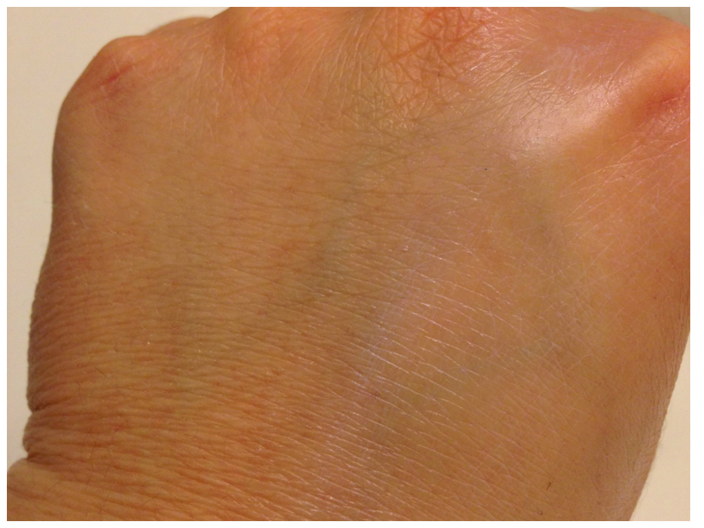Just for reference, I had spread the sun milk only on the right side of my hand. Even though I had put a lot of product on my hand, you can see that it absorbed really well with little trace. It does leave my skin nice and soft, with a slight powdery finish that covers up the fine lines on my hand. The powder finish also does a good job of diminishing my enlarged pores to make my skin look a little smoother.